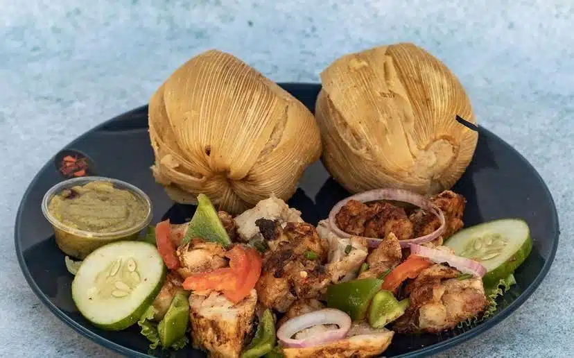 This meal is served. In a large pot layer the pot with corn husk and place the now wrapped corn dough in the pot. Add the seasoned fish to the pan and cook for 10-15 minutes until the fish is cooked through.